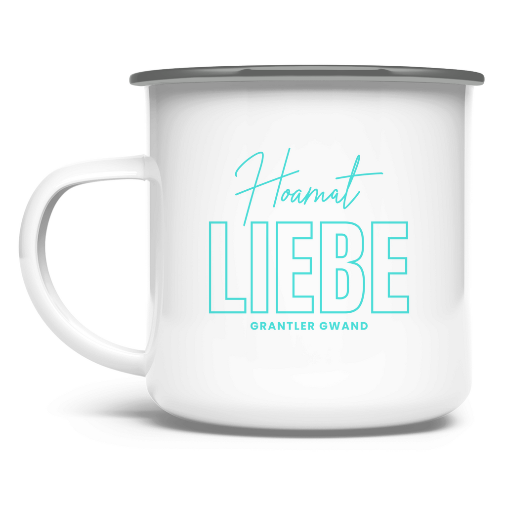Bayerische Emaille Tasse Hoamat Liebe - Mint - Grantler Gwand