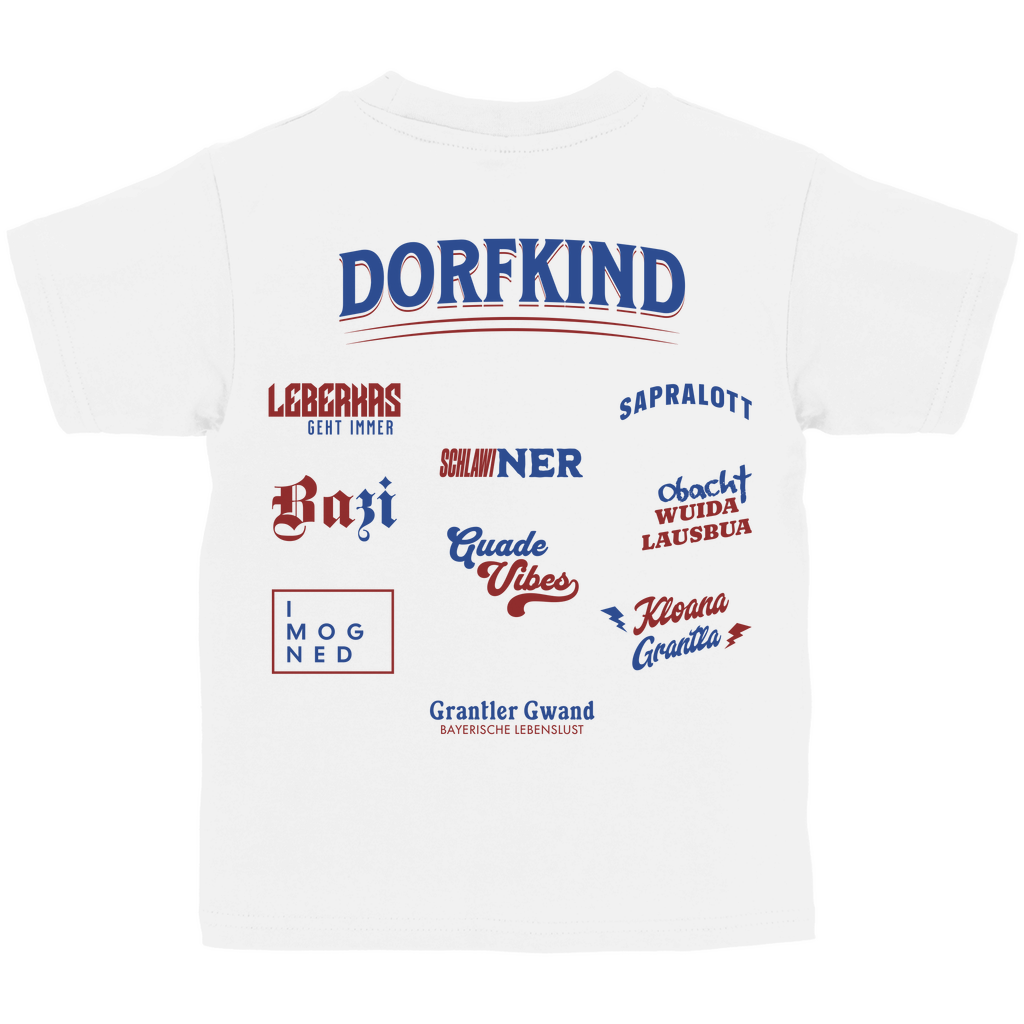 Bayerisches Kinder T-Shirt - Dorfkind für Buam - Rot/Blau - Grantler Gwand