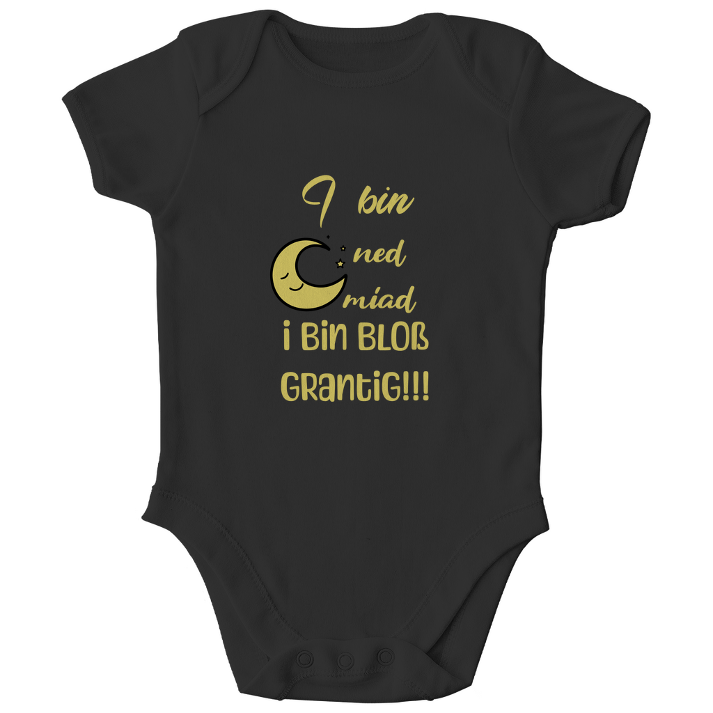 Bayerischer Bio Baby Body I bin ned miad, i bin bloß grantig - gelb - Grantler Gwand