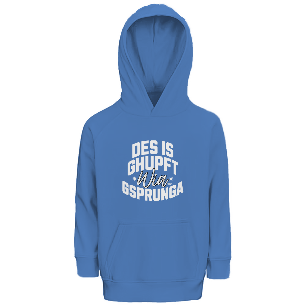 Bayerisches Kinder Premium Bio Hoodie Des is ghupft wia gsprunga - weiß - Grantler Gwand